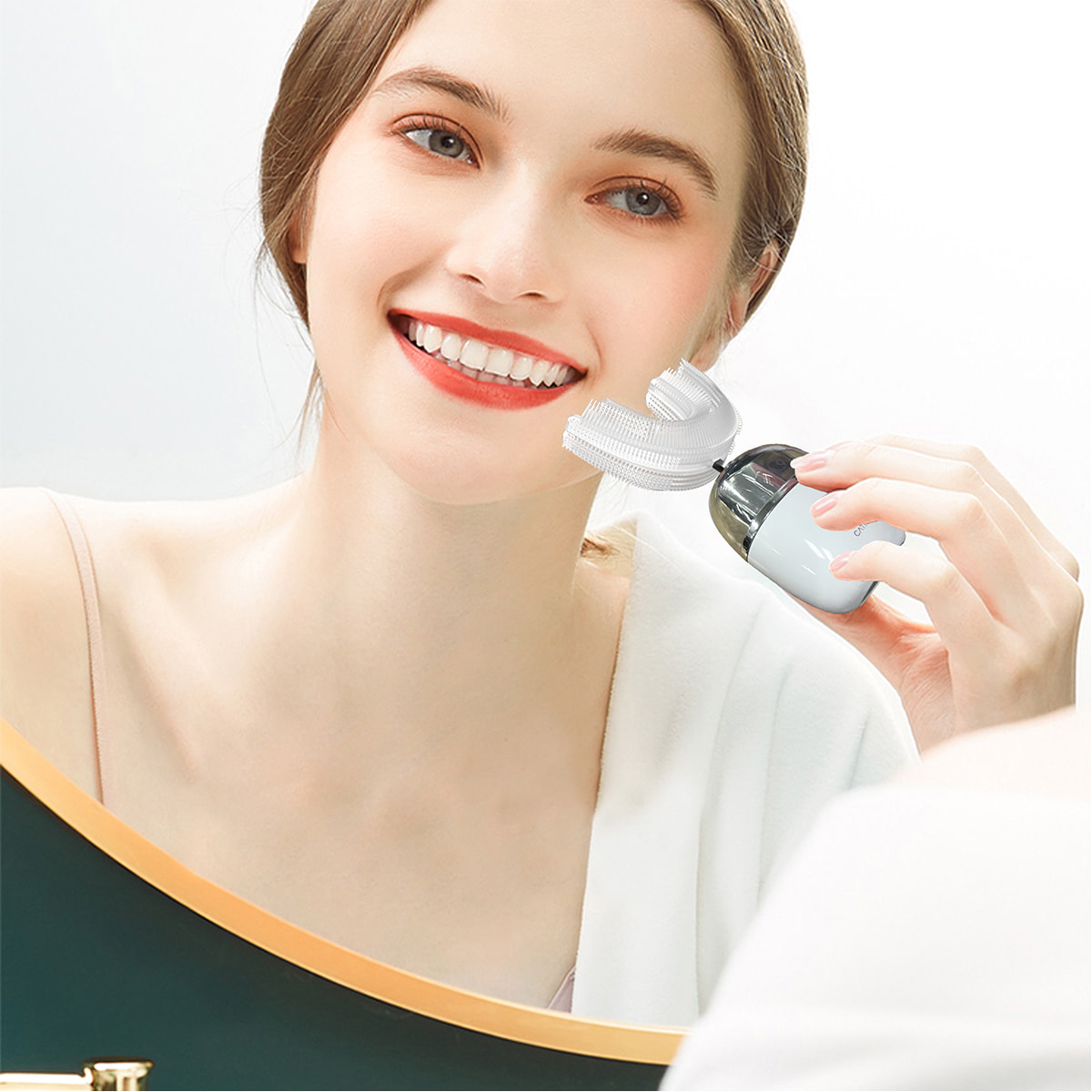 2068本の日本製シリコンブラシヘッドが歯の隅々までフィットし、口腔内を洗浄します。