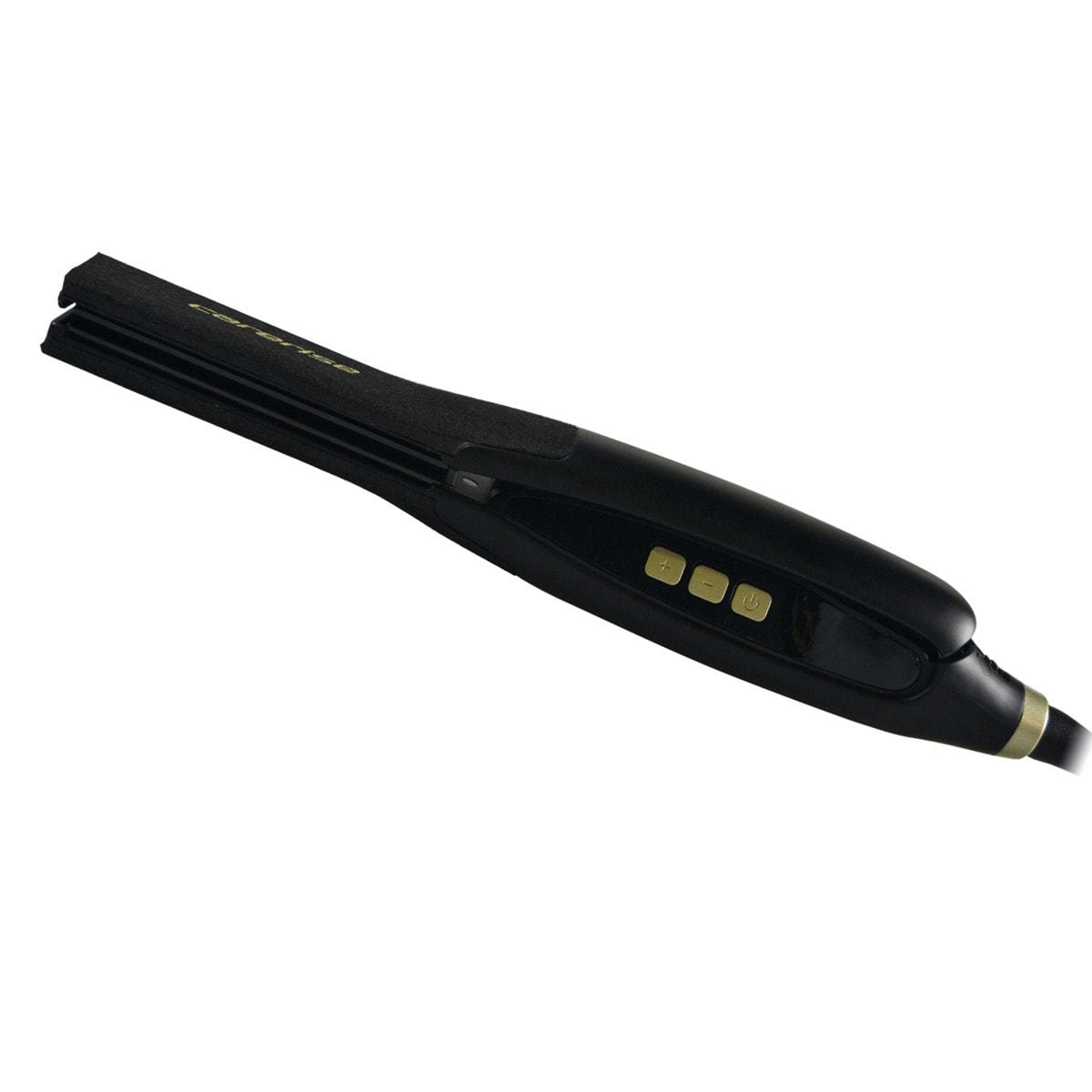 また、プレートに溝を施すことで、両端から水蒸気を放出。髪内部の水分量を一定にすることで、均一でつややかなストレートに導きます。